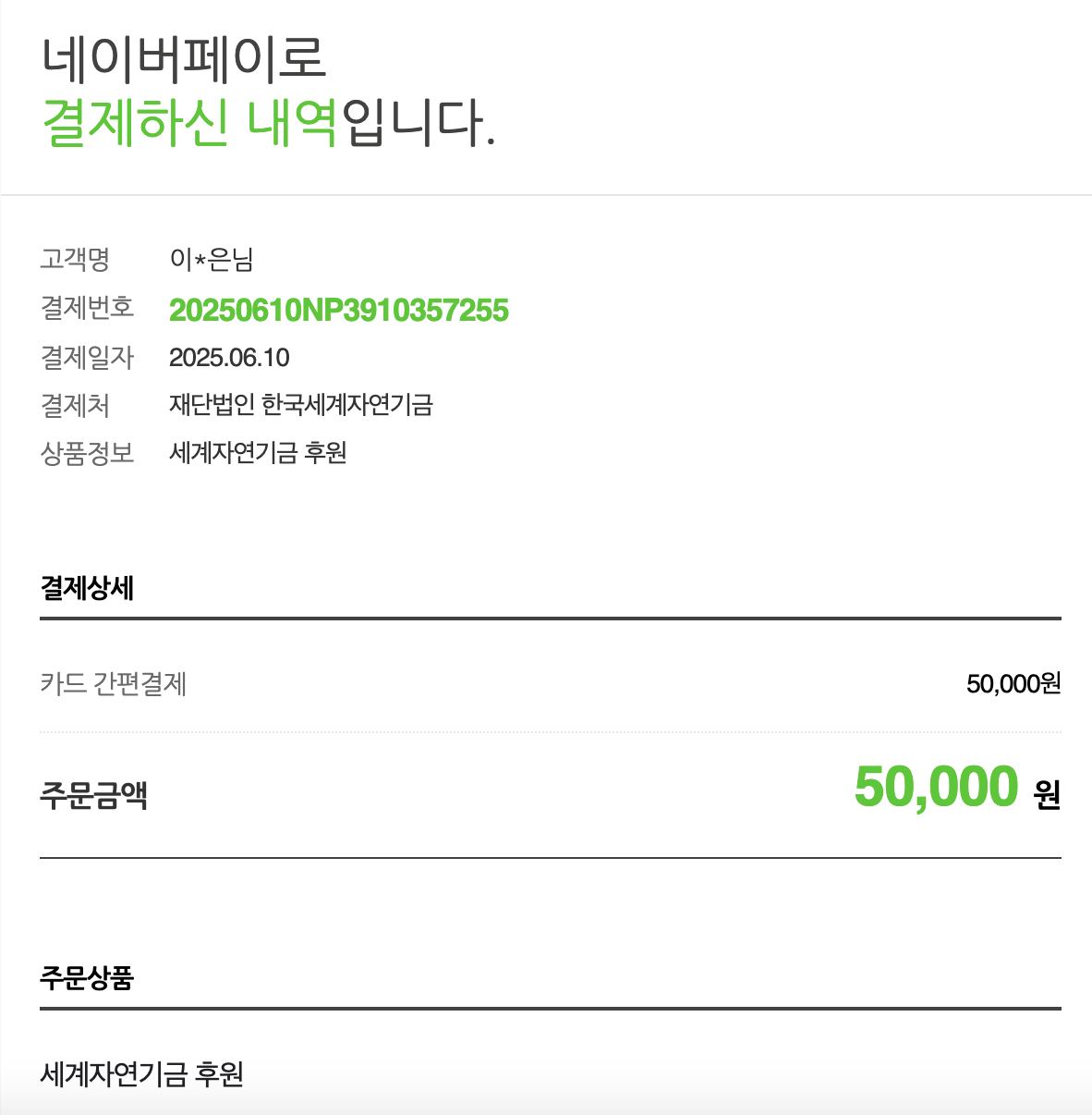 6명 총 차감 금액 48,000원에 2000원 보태서 5만원을 기부했다